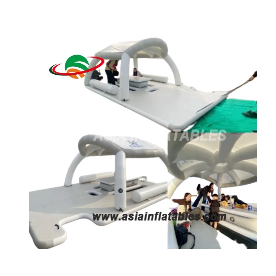 Αυτή η πλωτή πλατφόρμα-νησί διαθέτει χαλάκι, τραπέζι, πλάτη, ξαπλώστρες, στέγαστρο σκηνής, πλωτή αποβάθρα και τα λοιπά, μπορείτε να συνδυάσετε το ένα στοιχείο μόνοι σας.