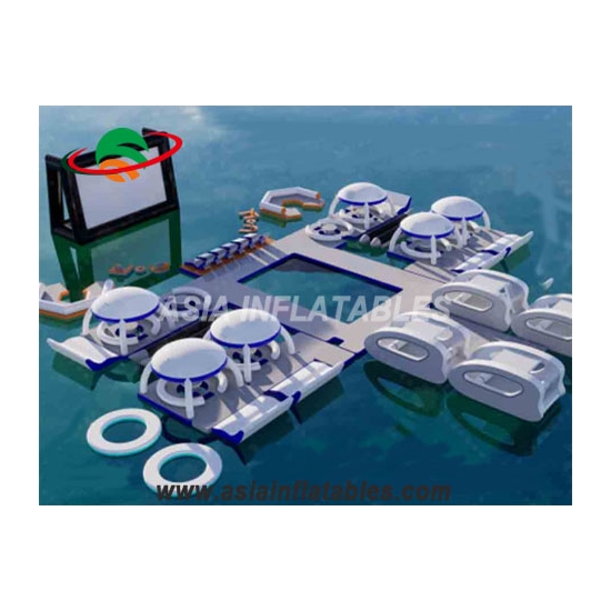 Αυτή η πλωτή πλατφόρμα-νησί διαθέτει χαλάκι, τραπέζι, πλάτη, ξαπλώστρες, στέγαστρο σκηνής, πλωτή αποβάθρα και τα λοιπά, μπορείτε να συνδυάσετε το ένα στοιχείο μόνοι σας.